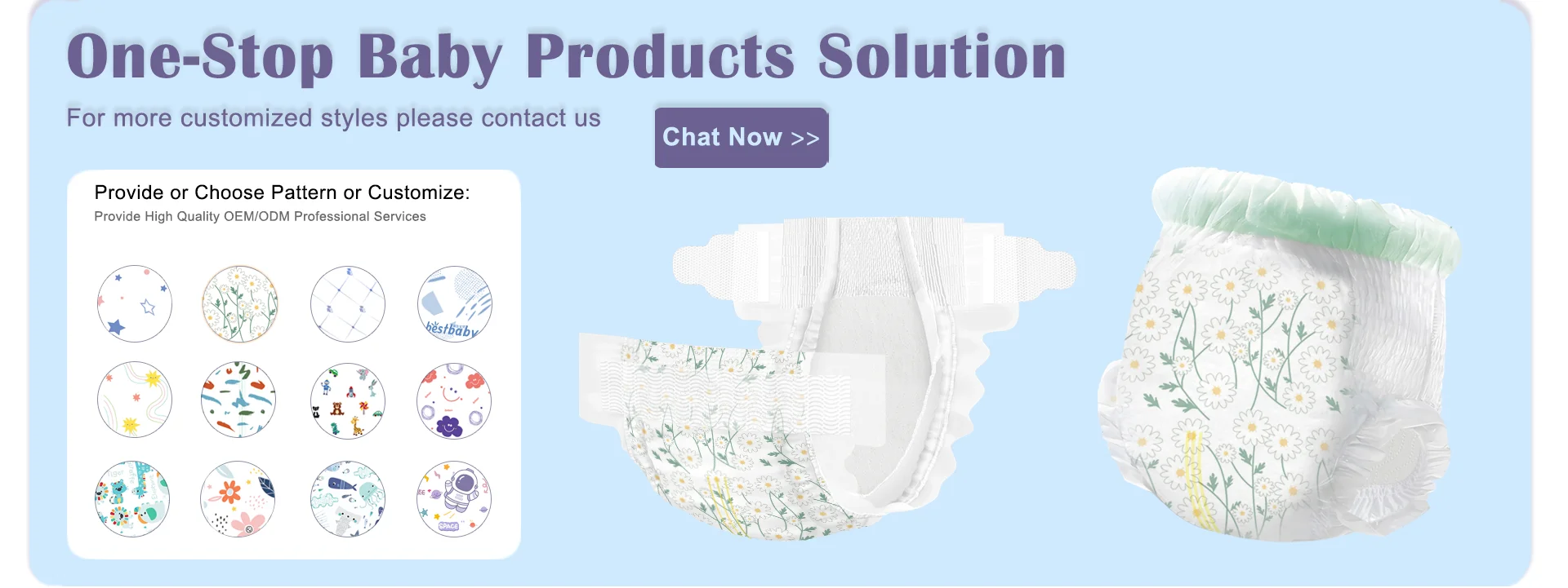 Productos principales:Pañales para bebés, pantalones para bebés, pañales para mascotas